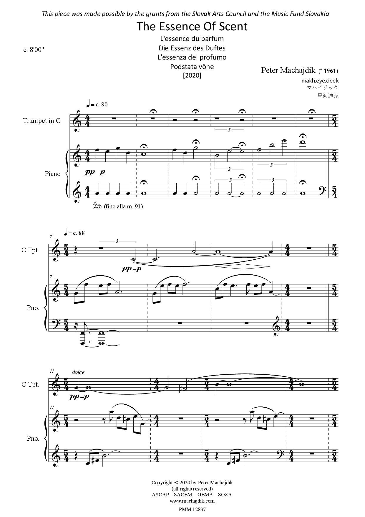 Peter Machajdík: THE ESSENCE OF SCENT for trumpet and piano (score and trumpet part)
