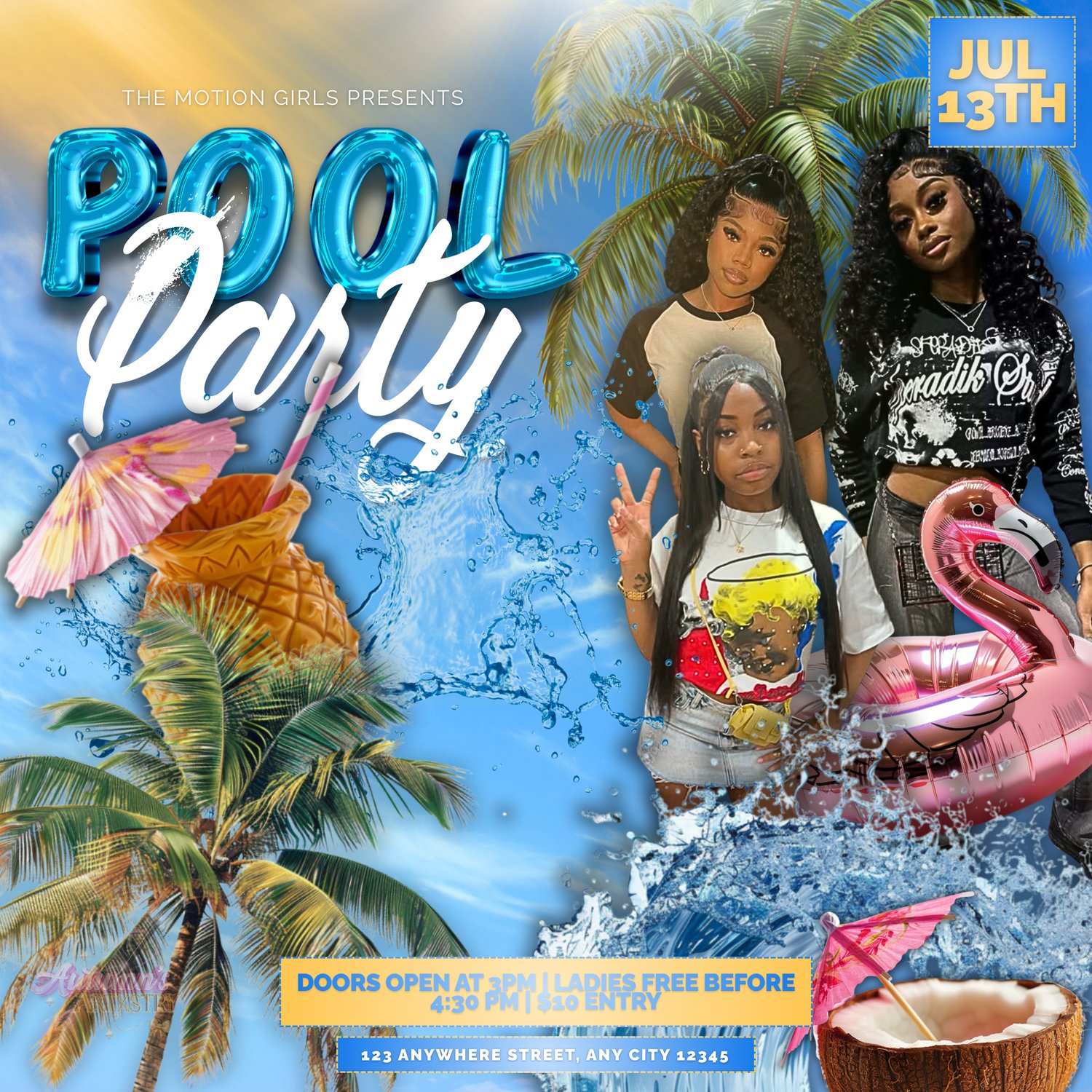 Promote your next event with a bold, eye-catching flyer designed for summer parties and tropical vibes. The Tropical Splash Pool Party Flyer is perfect for pool parties, day parties, beach events, birthday celebrations, and summer club promotions.