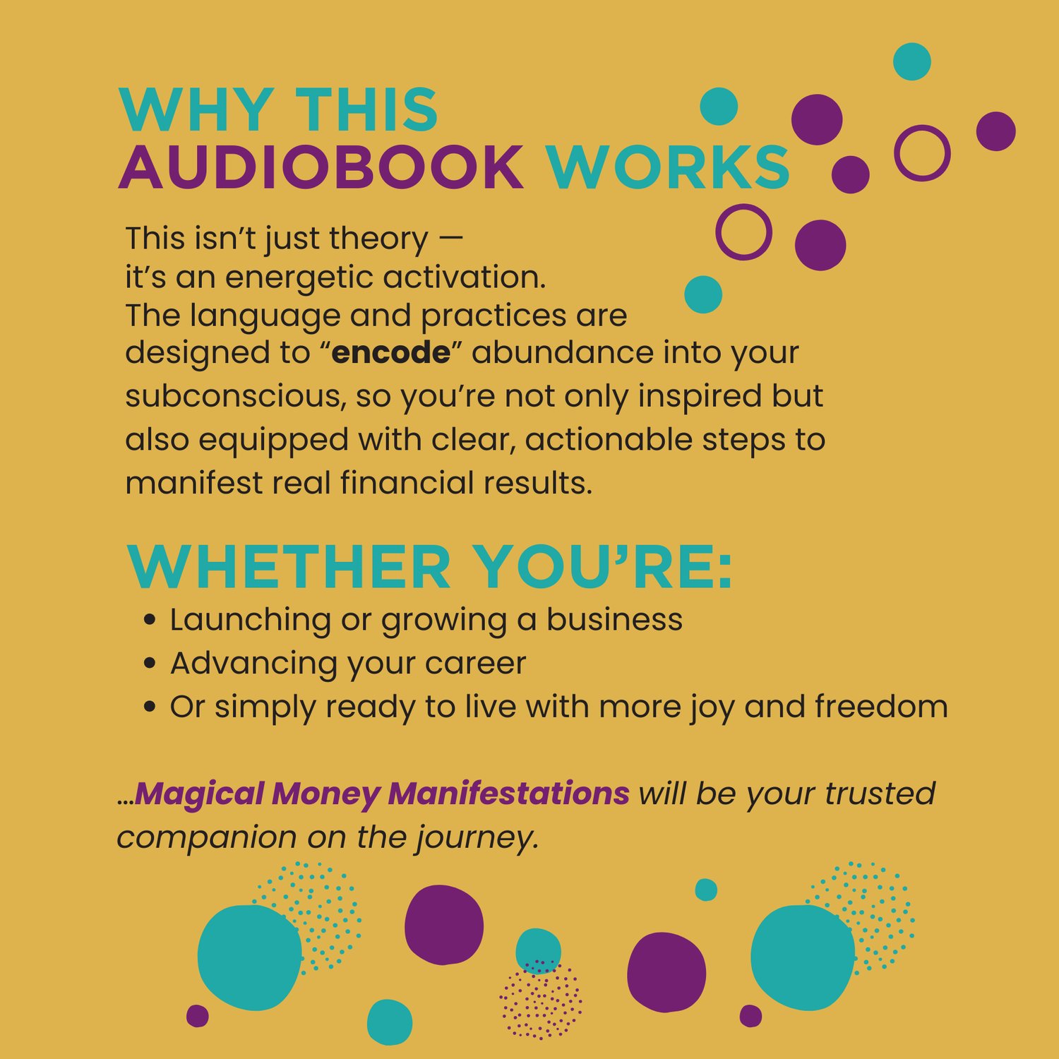 Magical Money Manifestations is not just an audiobook; it's your companion in the journey toward financial freedom and a joyous life. Unlock your potential and start manifesting the wealth and happiness you deserve.