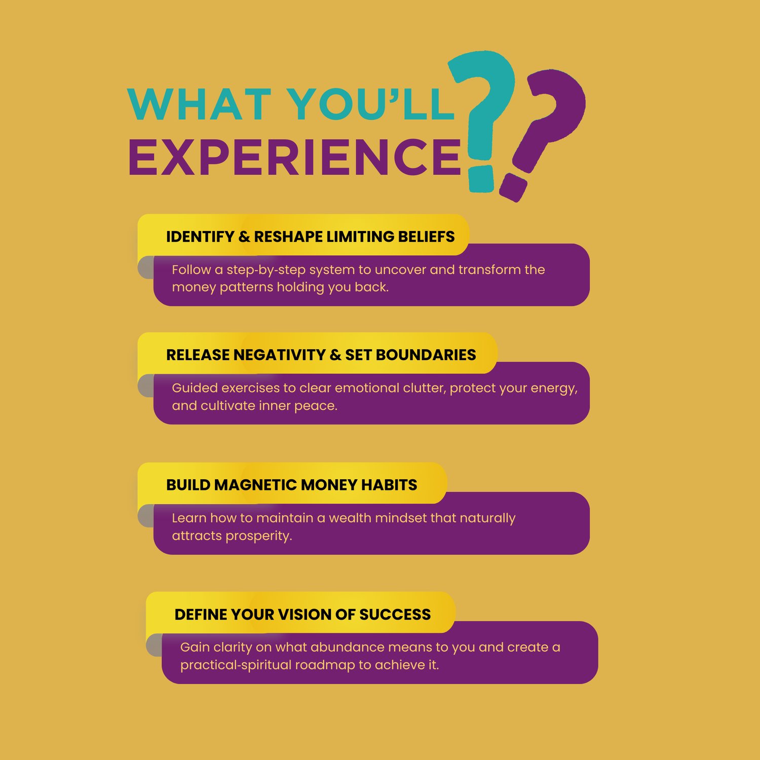 - Mindsets: Discover the secrets to a wealth and money mindset, with step-by-step guidance on creating and maintaining new money magnet habits.