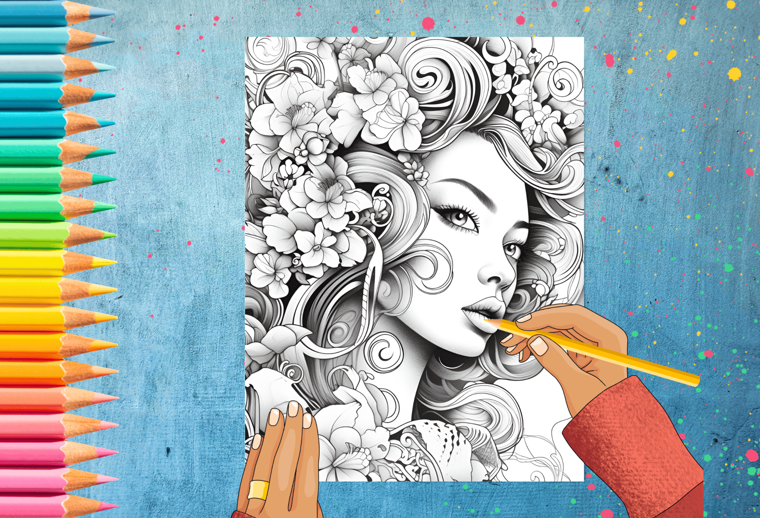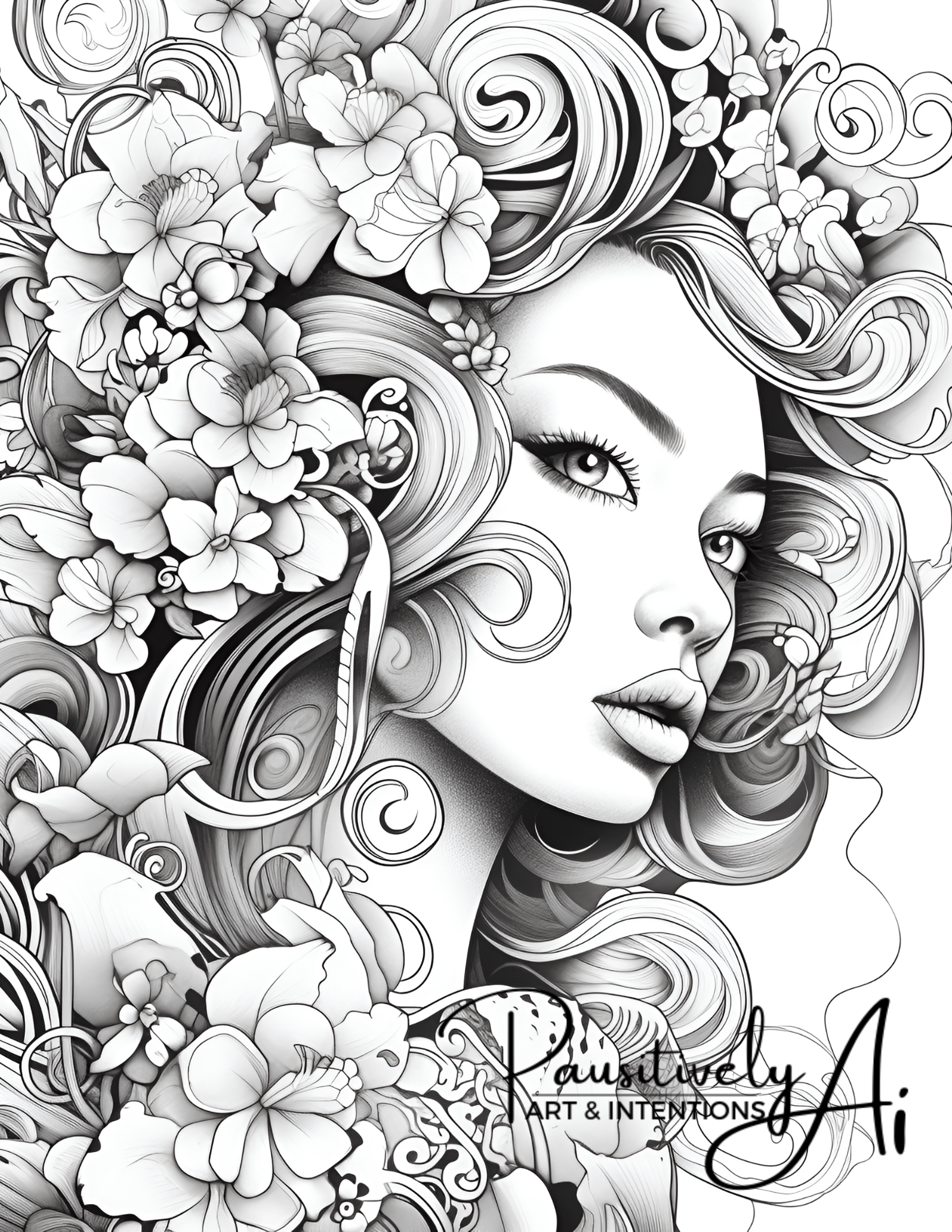 Curly Delight Coloring Page - a great way express creativity, reduce stress, and have fun. I hope this coloring page brings a little joy and positivity to your day. Purchase, Print, and Color! It's simple and easy. Great for teens and adults.