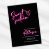 Celebrate in style with this modern Sweet Sixteen Invitation featuring a chic neon pink glow design on a sleek black background. Perfect for teens who want a fun, trendy, and unforgettable party vibe!