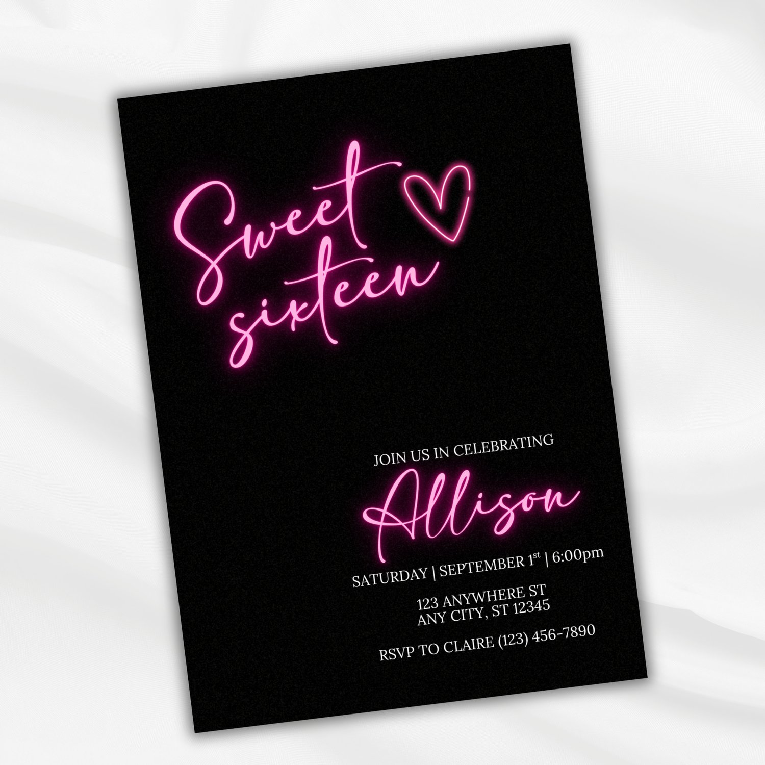✨ Sweet Sixteen Birthday Invitation – Neon Glow Digital Template ✨