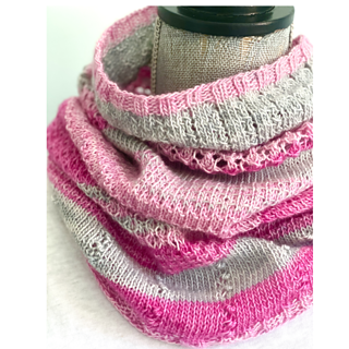 Pink Cowl: Lady Dye Yarns (Big Minis): Color A: Mrs. Hudson (lt. pink), Color B: Moriarty (grey),