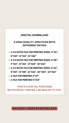 This is a DIGITAL DOWNLOAD only. No physical item will be shipped to you. Your purchase does not include a frame or mat. There may be slight color variations due to your monitor display, printer, print paper, and ink used.