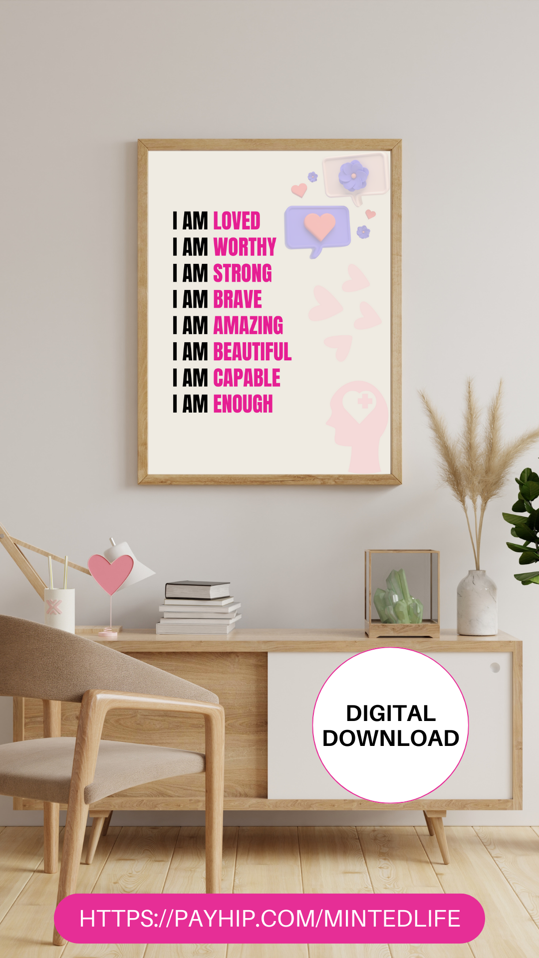 Hey you! Looking for the perfect positive affirmation printable wall art to manifest your goals and focus on self-care? This digital print for your wall decor is perfect for you!