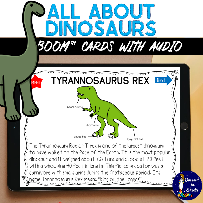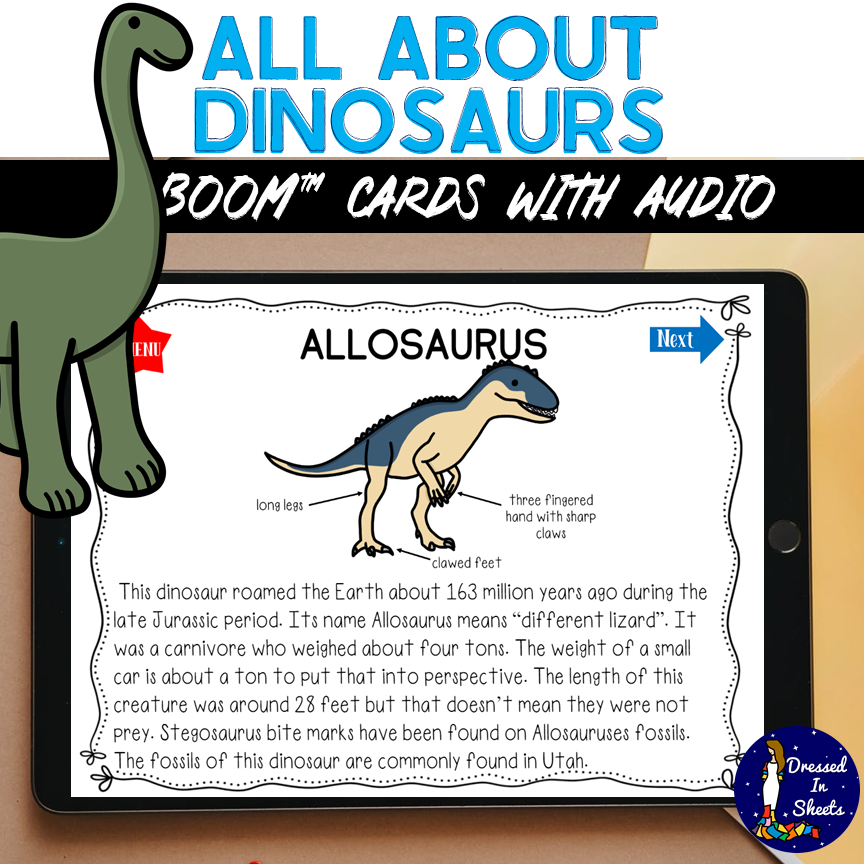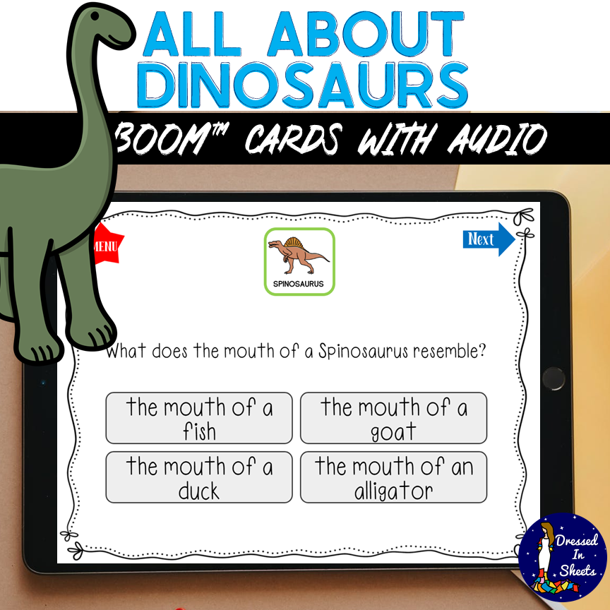 Ready to learn about dinosaurs? This BOOM deck will cover fun facts about the Allosaurus, Ankylosaurus, Brontosaurus, Parasaurolophus, Plesiosaurus, Pterodactyl, Spinosaurus, Stegosaurus, Tyrannosaurus rex, and Triceratops. As you read about every creature you will then answer 5 questions regarding your short reading. If you dare for a challenge take the ultimate quiz in which you will encounter questions regarding all dinosaurs on display. Students will be able to go back to the reading passage while taking the mini quizzes so they can practice their ability to reference.