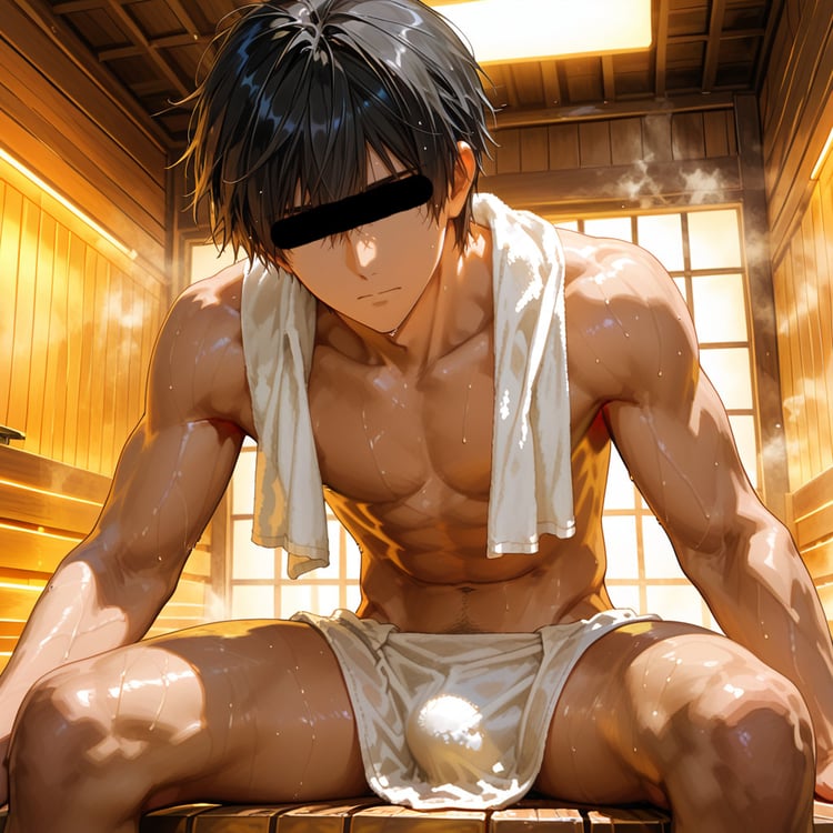 サウナで「整う」をテーマに、男らしいキャラクターの魅力を思い切って表現しました。
