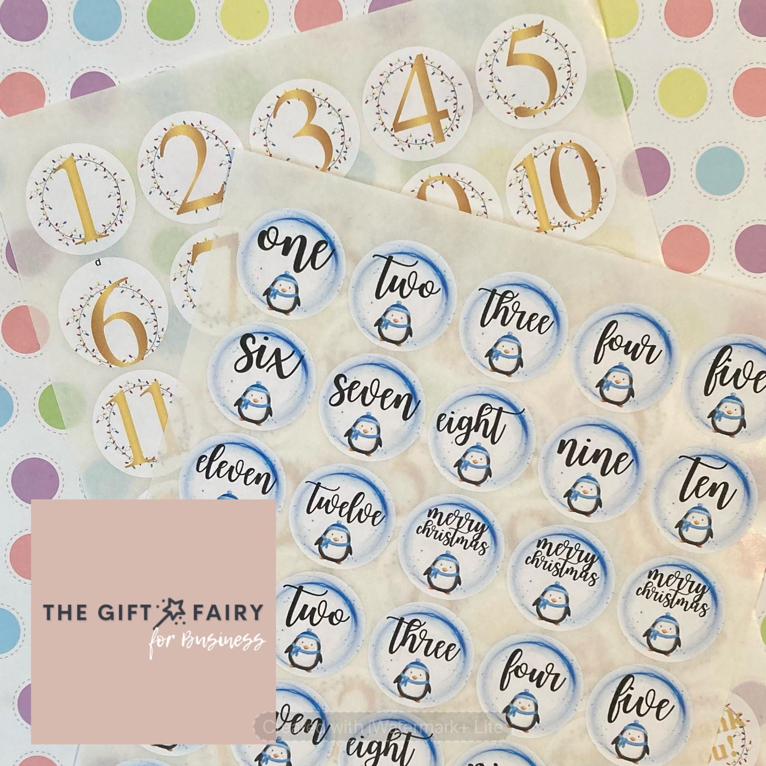Countdown to Christmas with these stylish stickers! Printed on matt sticker paper, each one measuring 37mm. 35 per sheet, includes 2 sets of numbers 1-12, 6 Merry Christmas and 5 thank you. Available in four designs, please specify your choice by messaging after purchase: