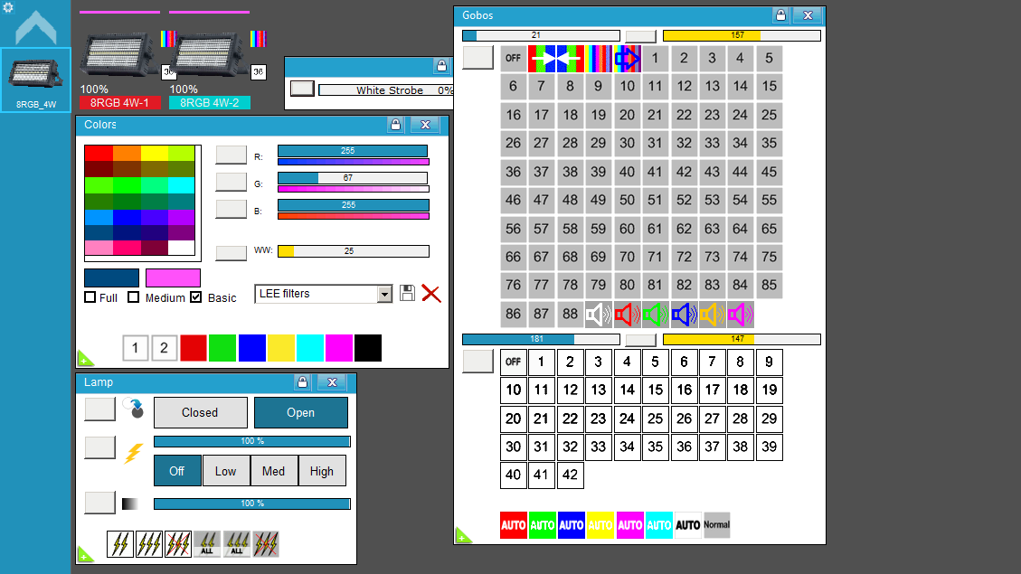 Librería para Freestyler DMX del Flash "8RGB+4W Stroboscope Lamp" de Yuer ( 4-6-12-24-30CH ).