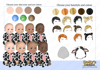three different skin tones, three eye colours and five hair colours)