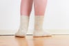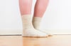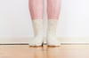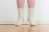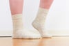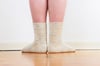 Foot circumferences are measured around the ball of the foot at the widest point and should be used to choose your sizing. Foot lengths are measured from the tip of the toes to center of back of the heel, and are to be used as a general guide only. For the best fit possible, check all measurements given in the pattern by trying the socks-in-progress on the intended wearer. (See page 4 of the pattern for more details on knitting your socks to the correct foot length!)