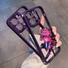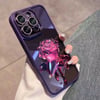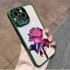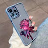 New Crystal Red Rose for Apple iPhone 14 13 12 11 Pro Max Phone Case Cover With Glitter Lens Film Translucent Camera Protection Shockproof