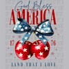 God Bless America Sublimation PNG | Patriotic Cherry Bow Design | Red White Blue Fourth of July Shirt Digital Download