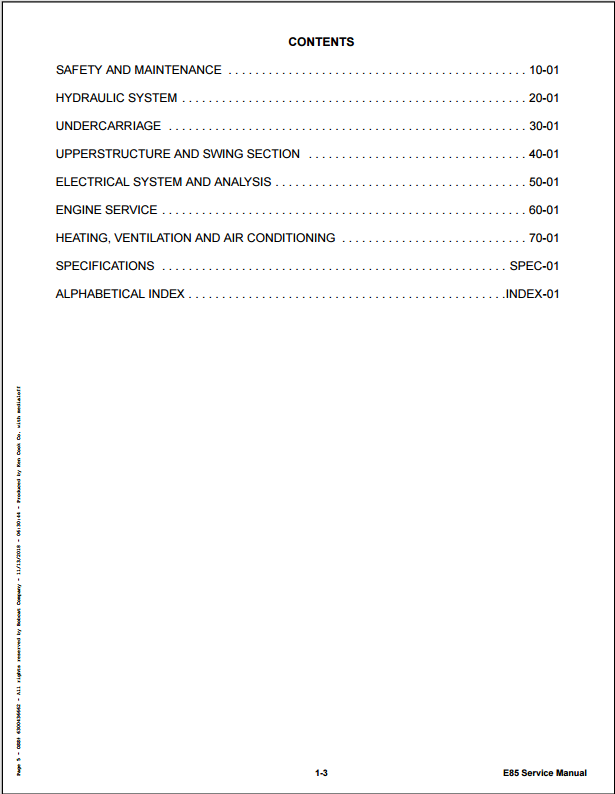2018 Bobcat E85 Excavator Service Manual Part No. 7320318enUS (06-18)