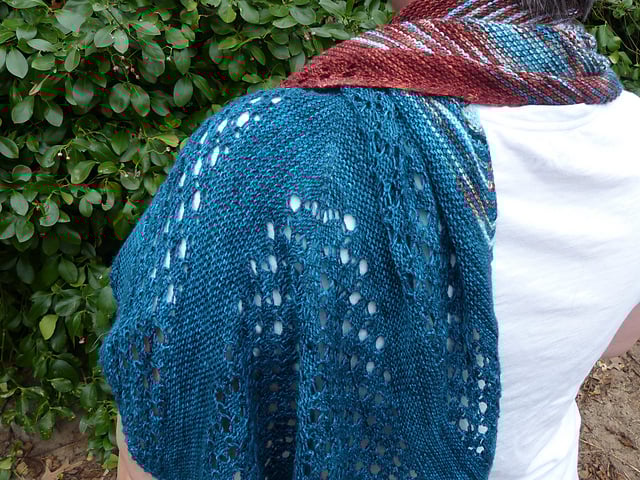 I dreamt this shawl up in the fall, when my thoughts were going from enjoying the vibrancy of the late summer harvests to thinking of falling leaves and stillness. I love fall and the way that it eases into our consciousness with subtle changes, like the smell of early morning air or that first leaf that falls on your shoulder. The colors fade with the daylight as we ease into the new season with our thoughts turn inward as we reflect on the year that is quickly coming to a close. Everything fades and slumbers…until spring comes again.
