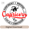 This Capricorn Zodiac Sign Round Frame Retro SVG files with round retro frame and positive traits for this sign, perfect for graphic design projects. Express the unique qualities of your sign with this stylish and accurate image.