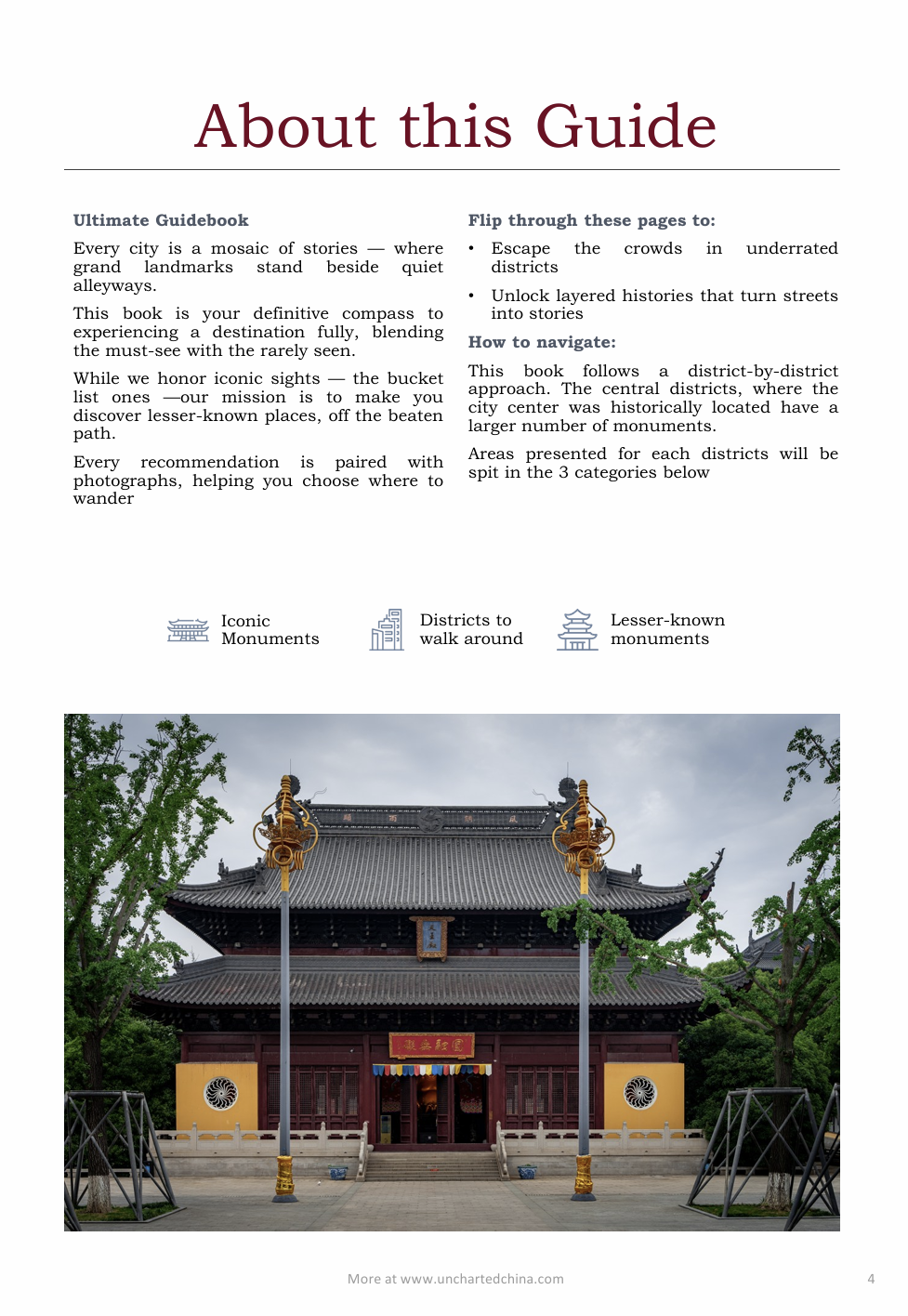 Unveil the secret heart of Suzhou with this 54-page guidebook, enriched with captivating photographs.