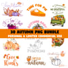 Png Bundle, 30 Autumn Png Sublimation Designs, Fall Clipart, Instant Download Bundles, Autumn T-shirt Designs, Bulk Clipart, Pumpkins