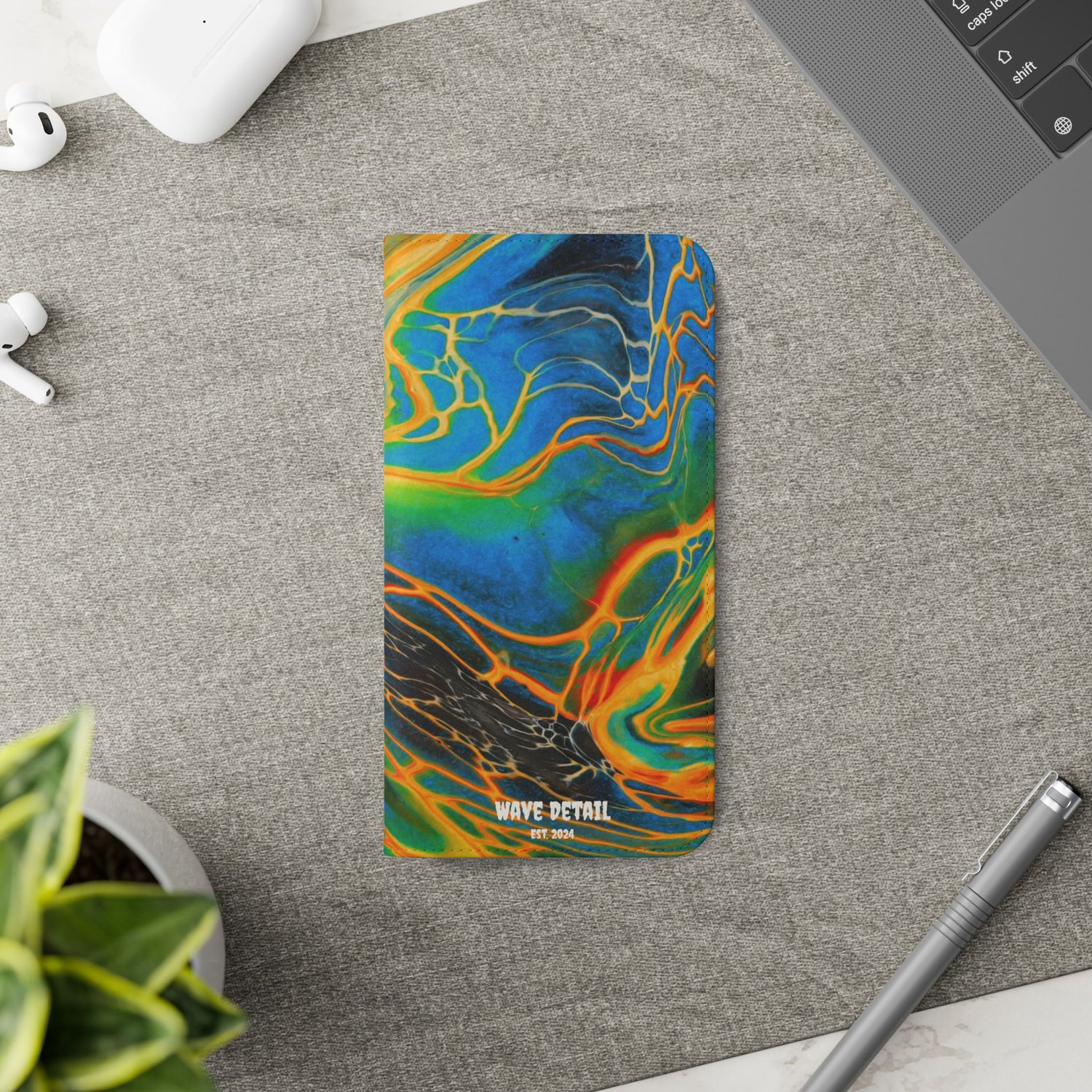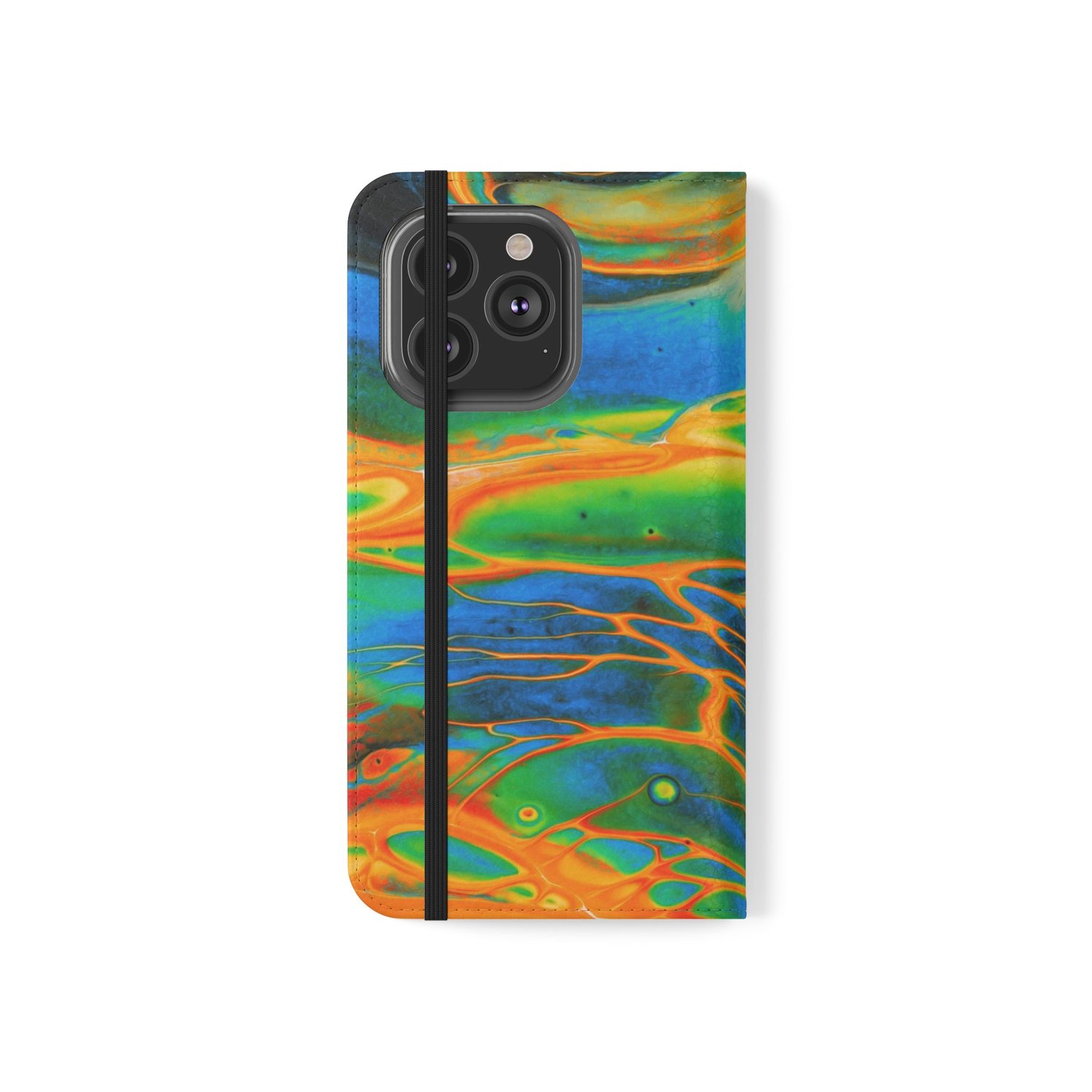 Each case serves as a protective layer and a phone stand. They feature a flat, elastic fastening to keep them closed and stitched inside pockets to store cards and cash storage easily. The polycarbonate inner shell keeps devices secure during regular wear and tear.