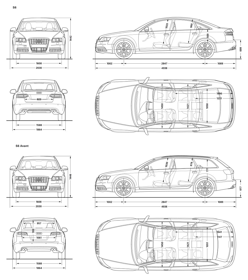 2009 Audi S6 Car Blueprint PDF SVG Vector Drawing.