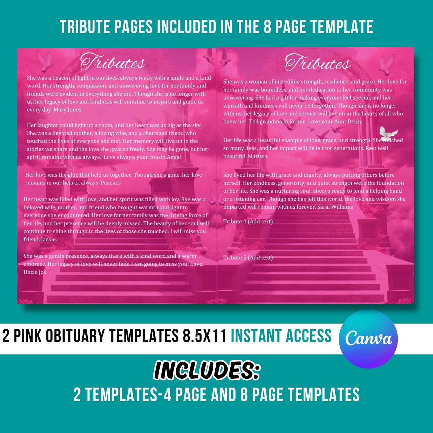Pink Funeral Program Template, Obituary Canva Template, 8 Page Funeral Program, 4 Page Funeral Program Template, Canva Obituary Template