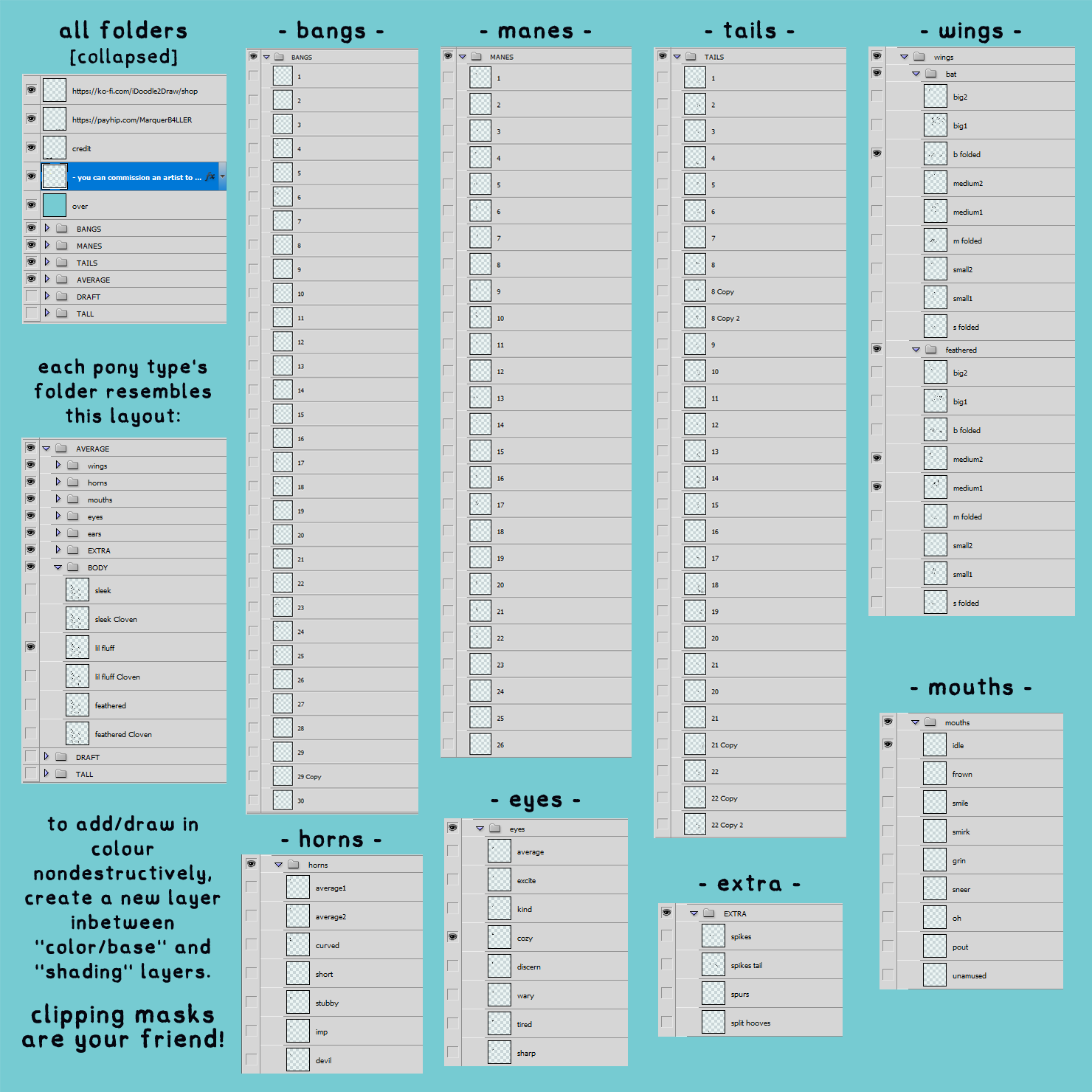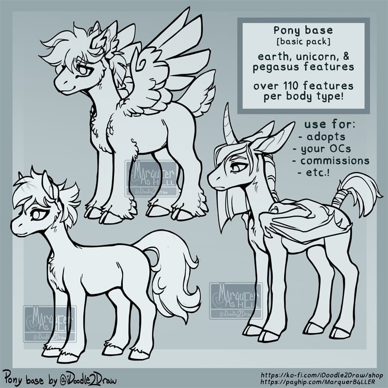 an idle pose art base of my toony pony style! you can paint, edit, customize these bases however you please- add your own features if you'd like. add markings, patterns, scars, tattoos/body paint, etc. literally go crazy!