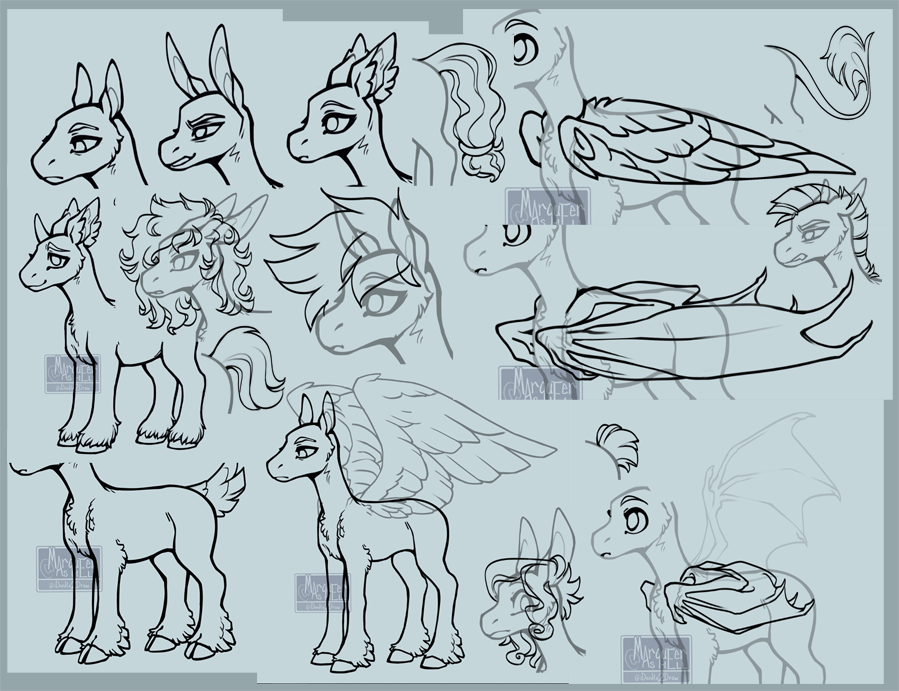 - variations of each pony type: fluffy, feathered, and cloven variations.
