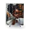 This stunning shower curtain, measuring 71x74 inches and made from premium polyester, showcases the captivating Vibe of a Queen Relaxing in a bubble bath
