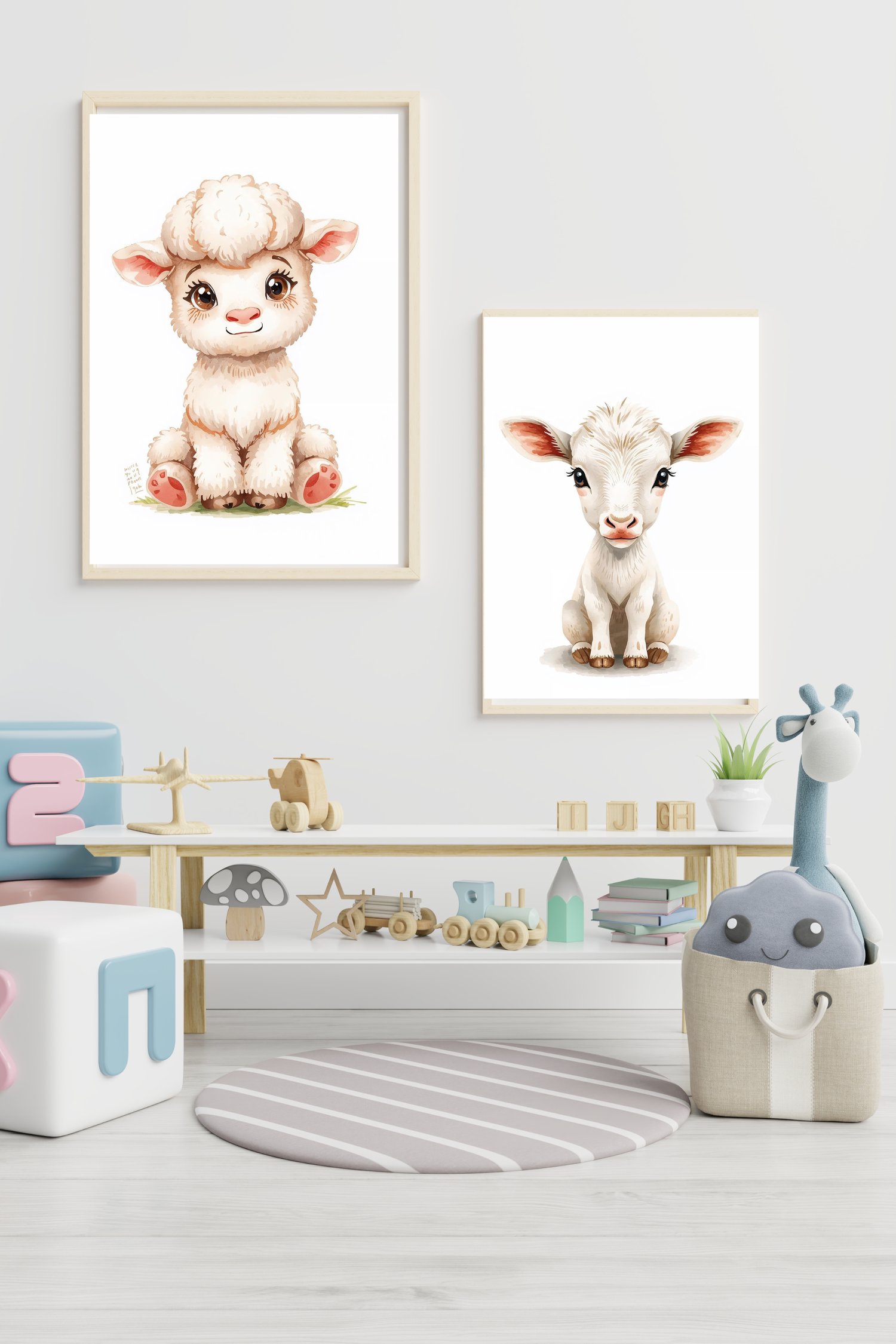 Cute set of 2 farm animals , Perfect for child's room or day care.