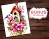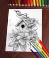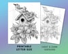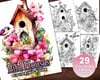 29 Bird Houses Cute Coloring Page Book, Adults + kids Instant Download Grayscale Coloring Page, Printable PDF birds, beauty, birds, flowers