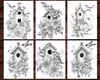 A beautiful collection of beautiful bird houses with great detail for coloring. This is a beautiful and detailed illustration set for your coloring joy made by The Botanical Nook (TheBotanicalNook)! Coloring is such a fun activity to create your own, unique and beautiful works of art. You can instantly print it on your home printer and go right to coloring. Made a mistake? No problem! You can print it out again and start over.