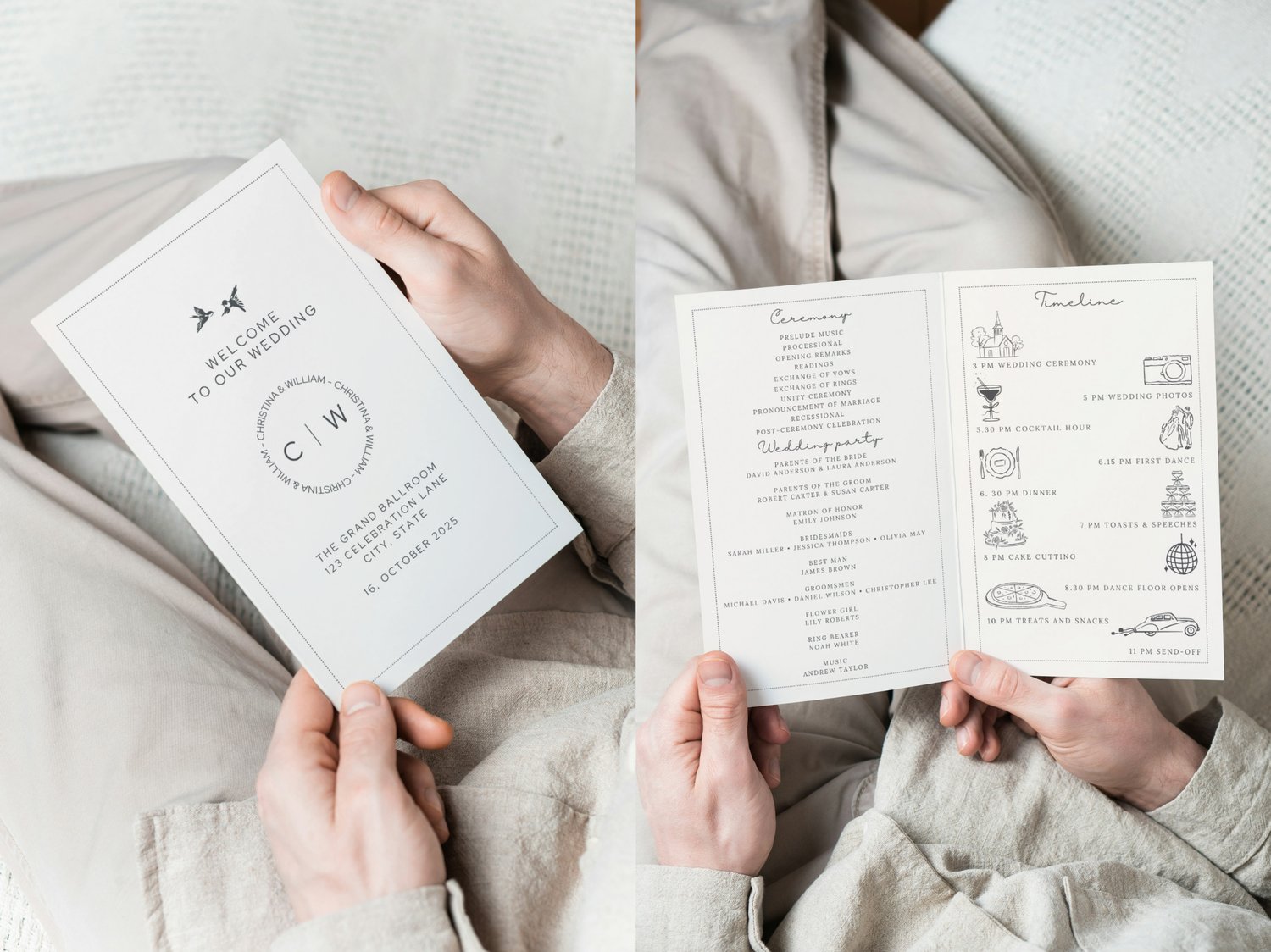 Bifold Printable Wedding Program With Monogram Minimal Bird Design Ceremony Timeline Template For Formal Wedding Event Program Template 010