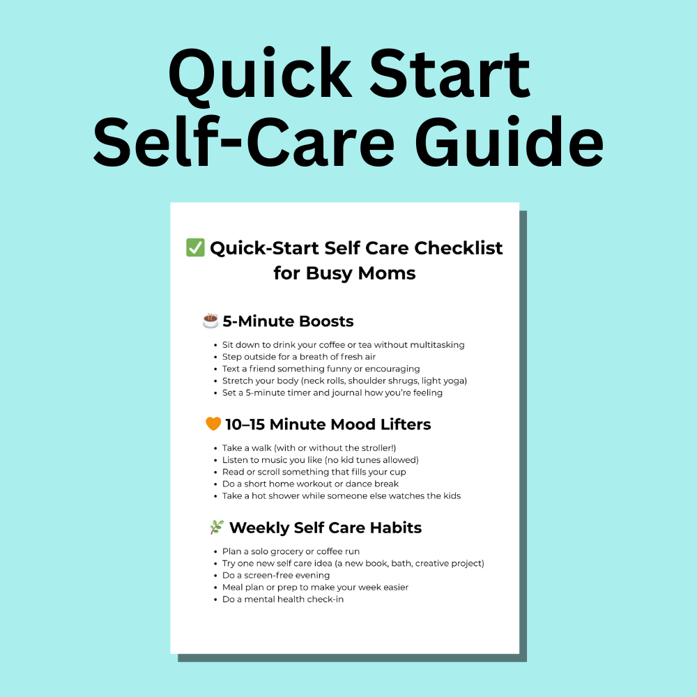 If you're a busy mom who wants to start incorporating self-care, but you don't have a lot of time and you don't know where to start, this Quick Start Self Care Checklist can help you get started.