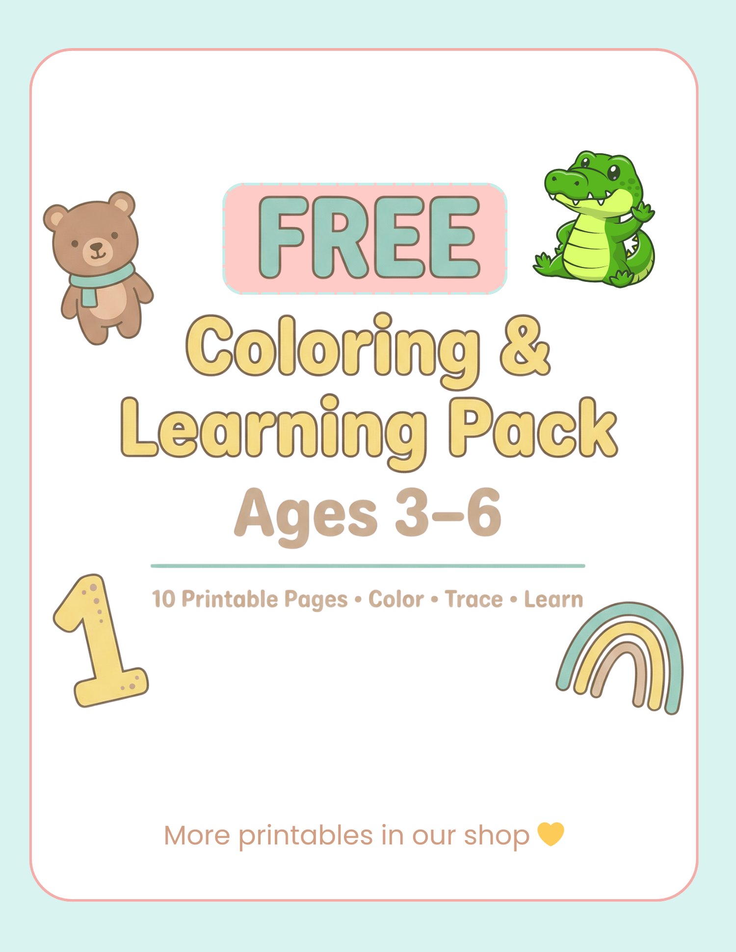 This FREE 10-page Coloring & Learning Pack is designed for children ages 3–6 to build early learning skills while having fun.