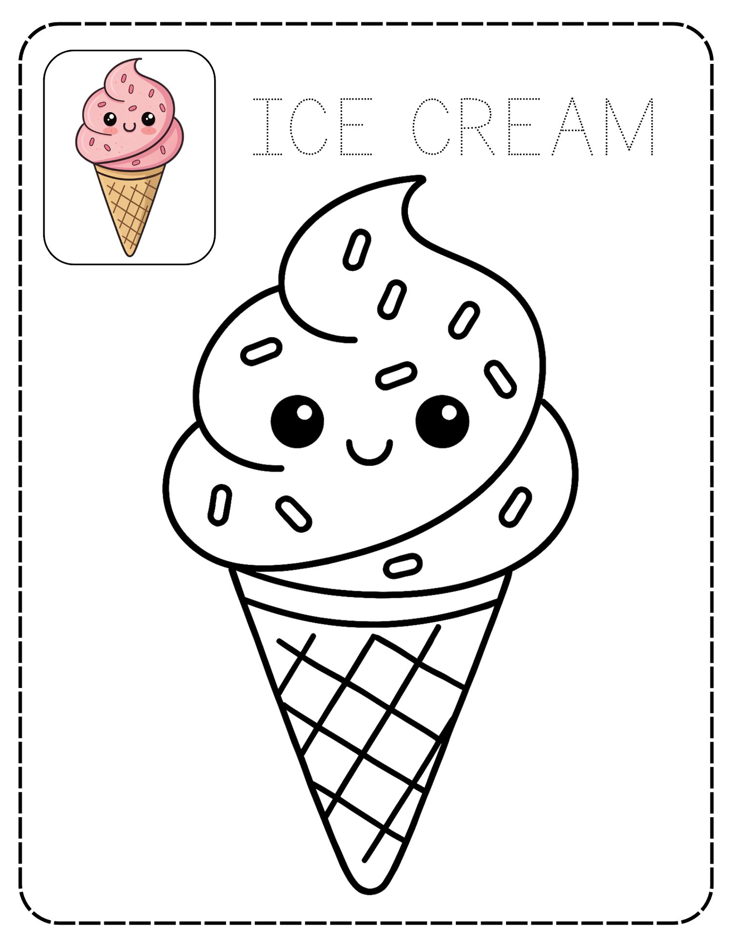 • 3 coloring + word tracing pages (Rainbow, Airplane, Ice Cream)