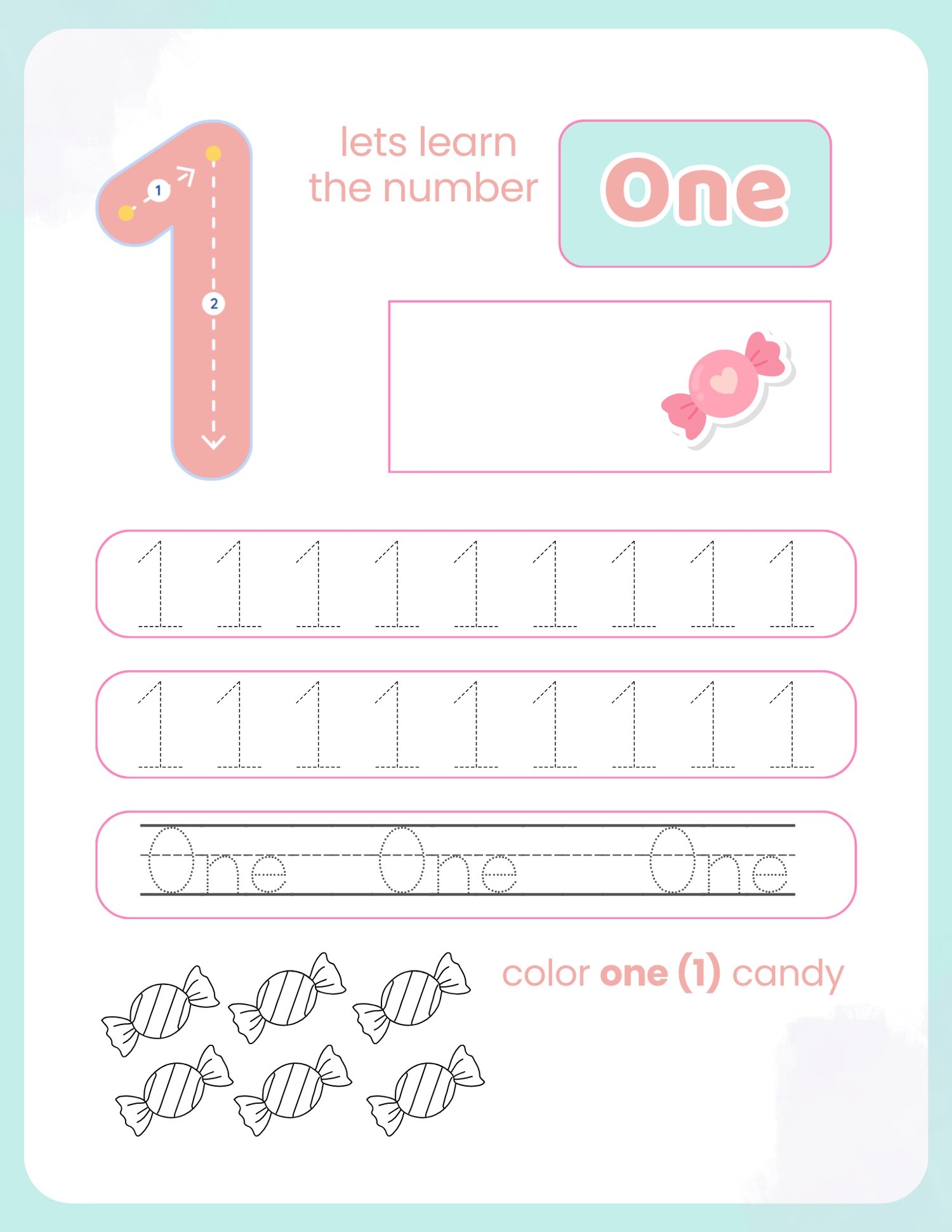 • 1 number learning page (Number 1)