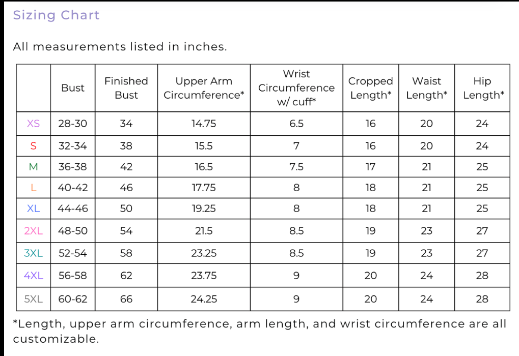 Stripe Width - The width of the stripes are vary by size to be proportional to the bust size.
