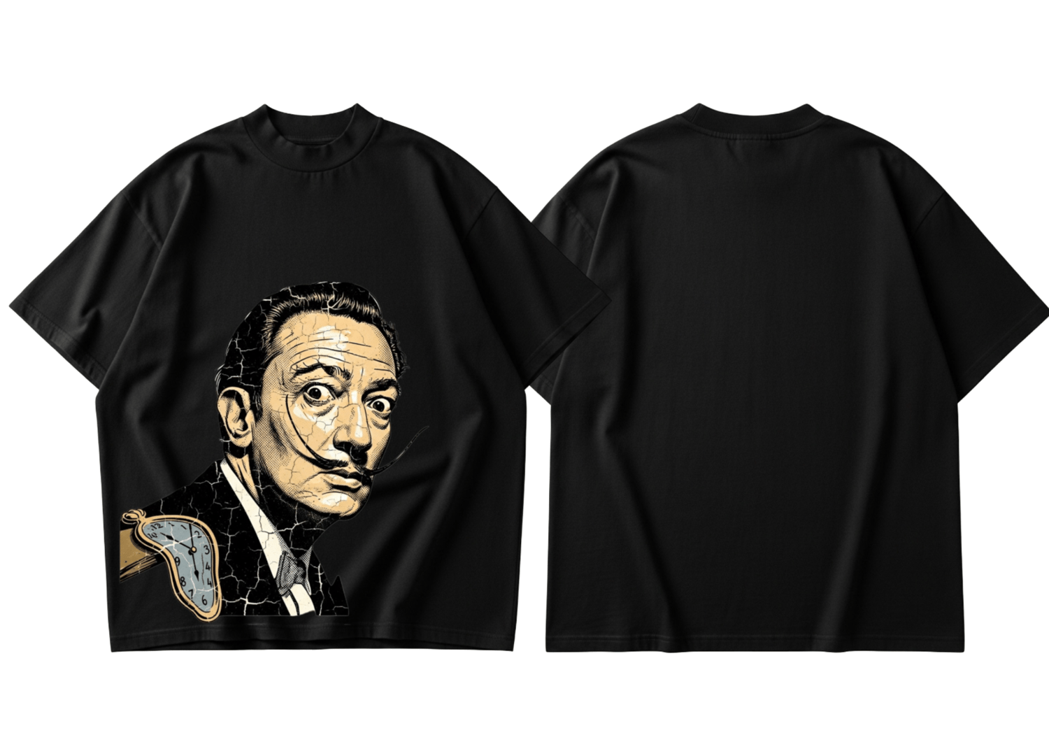Salvador Dalí Tribute Tee — Surrealism meets streetwear. Featuring a striking, vintage-inspired portrait of Salvador Dalí with his iconic eccentric flair, this tee captures the boundary-pushing energy of one of art’s greatest visionaries. Crafted from premium cotton with a bold, textured finish, it fuses timeless creativity with urban edge — perfect for those who see fashion as a canvas for self-expression.