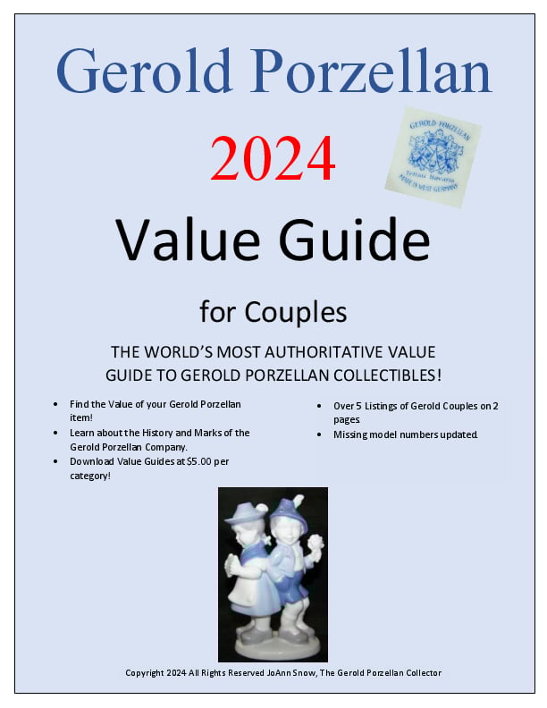 Download a 2024 Digital PDF Value Guide for Gerold Porzellan Couple Figurines for $5.00. This Value Guide has over 5 listings of Gerold animal figurines on 4 pages.