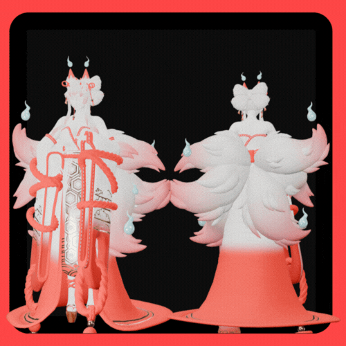 🌸Kitsune Ears, Fluffy Six Tails, Kitsune Hair, Kitsune Mask, Mouth Charm, Long Kitsune Sleeves, Long Kimono, Spirits, Long Socks and Kitsune Heels Included