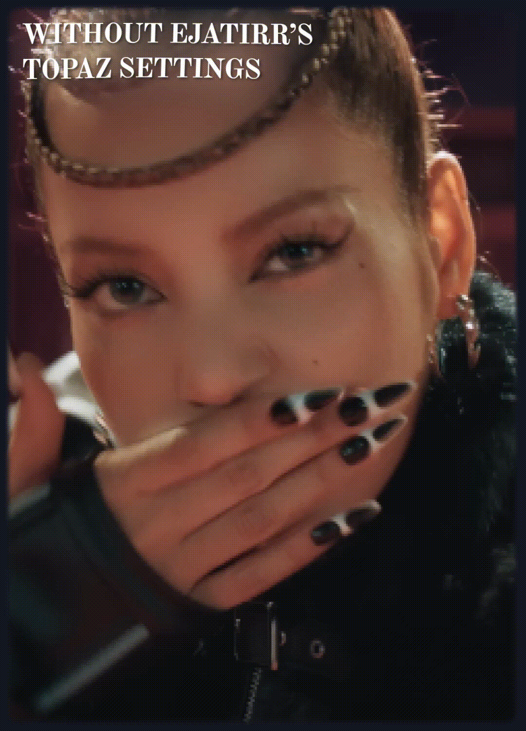 EJATIRR's Topaz Settings improve video quality by making it sharper, reducing grainy noise, and smoothing out shaky footage. They are best paired with EJATIRR's MAIN CC #2.