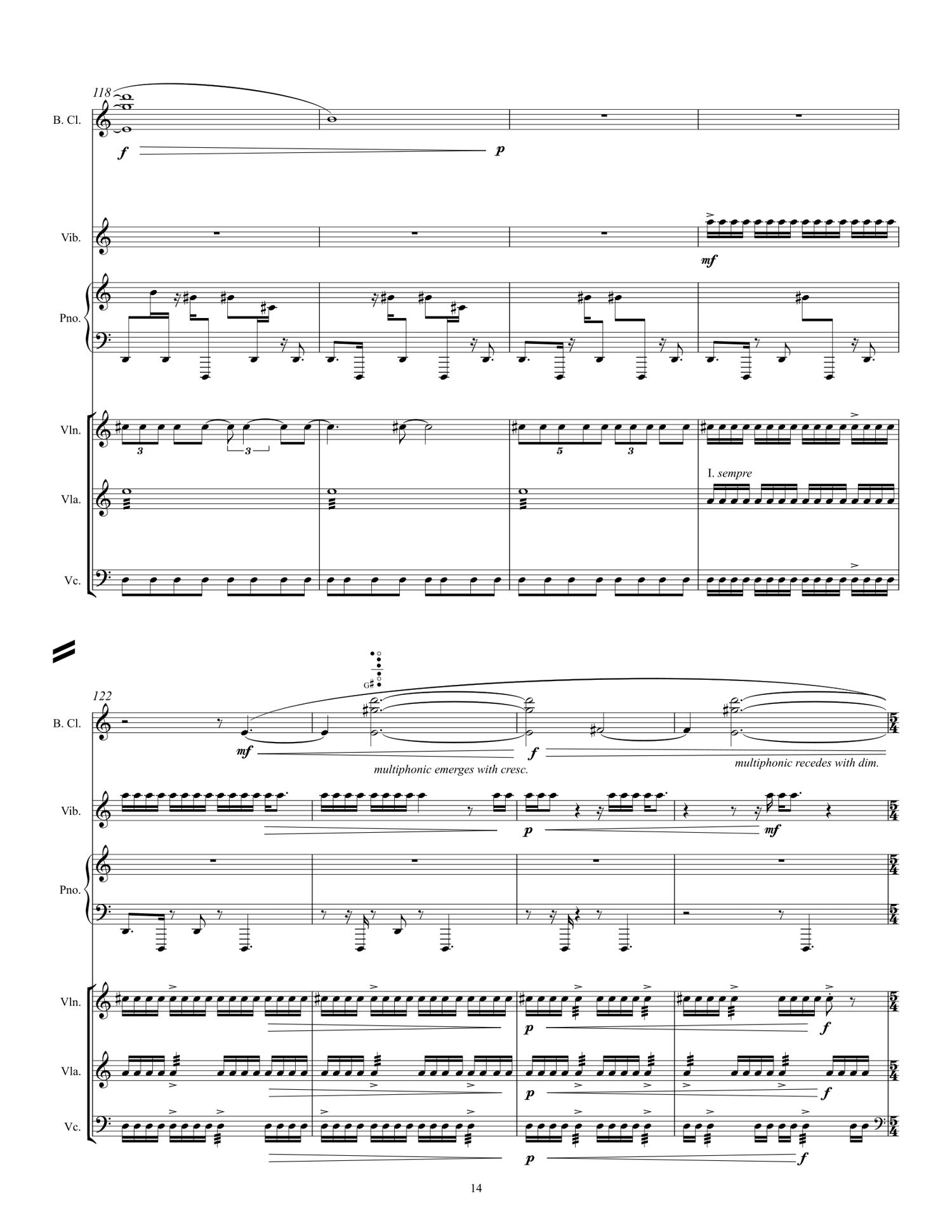16 pages (score); duration 8'; instrumentation b.cl, vib., pno, vn, vla, vc