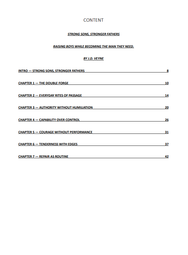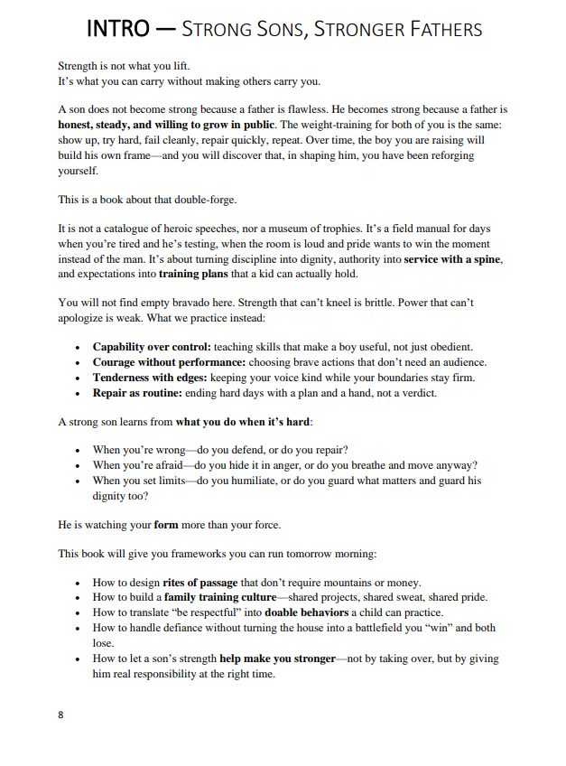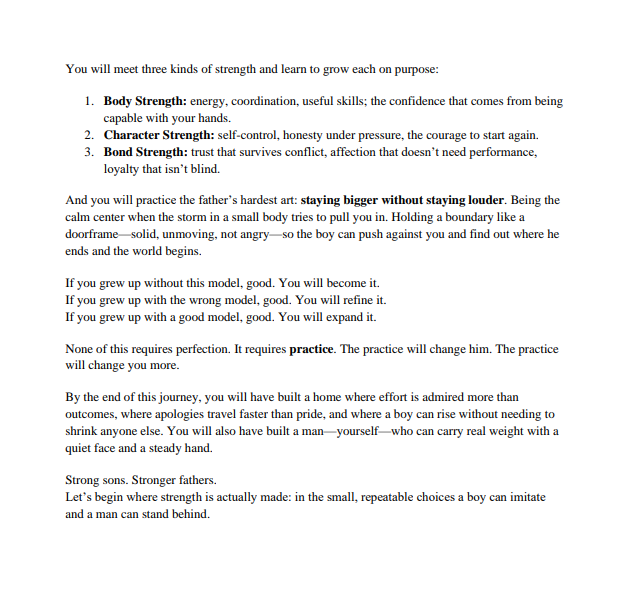 This book is not about flawless fathers or flawless sons. It is about practicing strength together—visible, repeatable, and real.