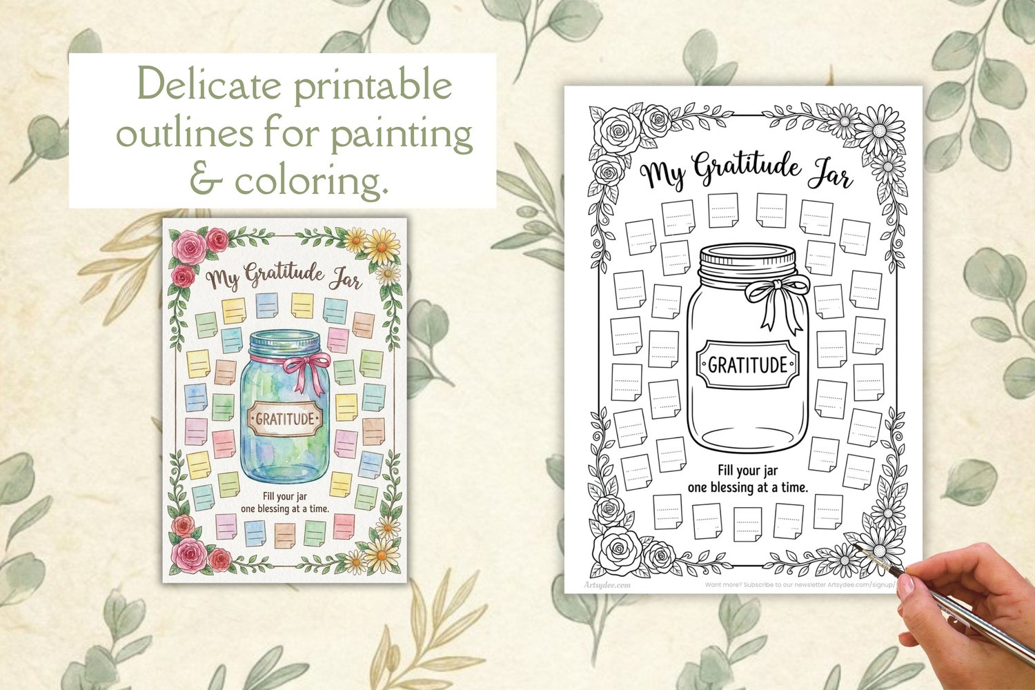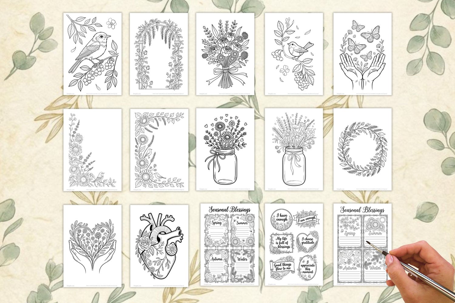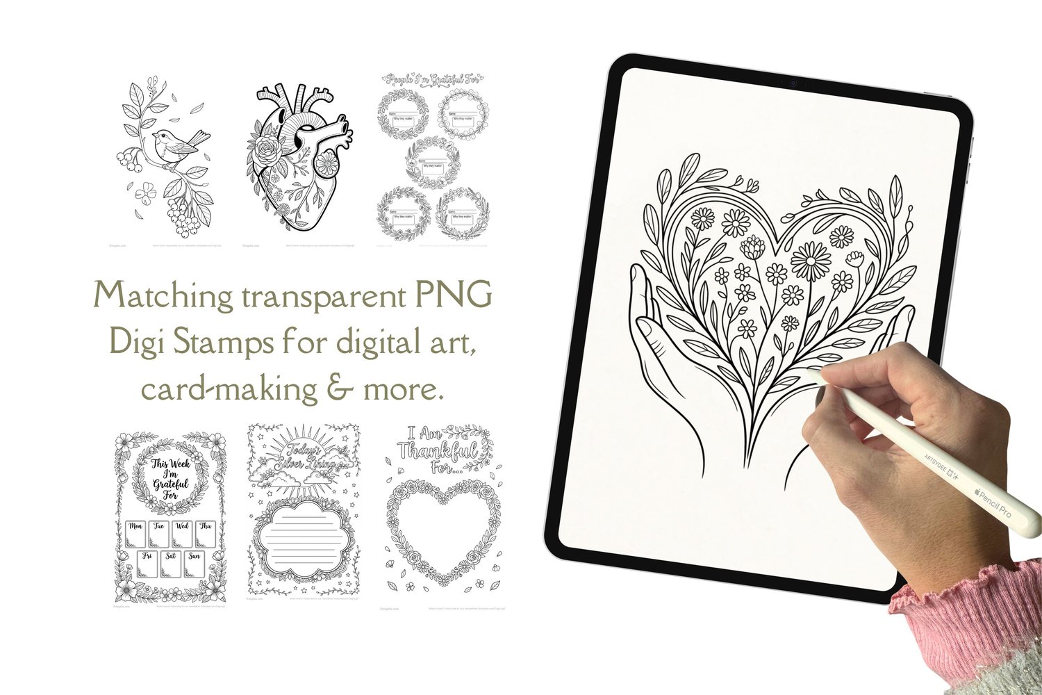 Gratitude Watercolor Templates | 35 Printable Coloring Pages & Digi Stamps