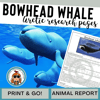 Students will learn about the Bowhead Whale with this research information page. It's perfect for writing an Arctic animal research paper. It also is great for ocean animal reports or learning about whales. It could even be used as an engaging reading activity. No prep! Just print & go!Students love researching when it involves learning about arctic animals. There are so many fascinating facts. Did you know that bowhead whales live for a very long time? ❓❓❓There was one that lived for 268 years!