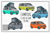 This is listing is for a collection of Campervans. These Campers are Class B SWB (Short Wheel Based) these are generic and could fit a number of the main manufactures. There are 13 colours and all (apart from the white) come as with a white top alternative. All come with the roof up and the roof down. There are high resolution PNG files and suitable for sublimation and print. These work perfectly on their own but are also designed to work with my other camping sets. Have Fun.