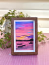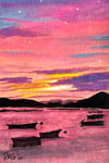 Omishima is a treasure of an island nestled in the Geiyo island chain off the northern coast of Japan’s Ehime Prefecture. It’s possible to drive completely around many of these islands by car, as they’re connected to the mainland (Hiroshima & Ehime) and each other by bridge or water taxi. The Seto Inland Sea is rich in biodiversity and everywhere you go on these islands you’ll encounter fishing boats, stacks of octopus traps and scallop shells, people diving for sea urchins and the occasional seaweed or oyster farming operation. Along with the fragrant scent of millions of orange blossoms in May, these islands are also known for their stunning sunsets year-round, and I was lucky enough to capture one. This vivid 4 x 6-inch, postcard-sized sunset will add a joyful yet calming splash of color to your home or office space.