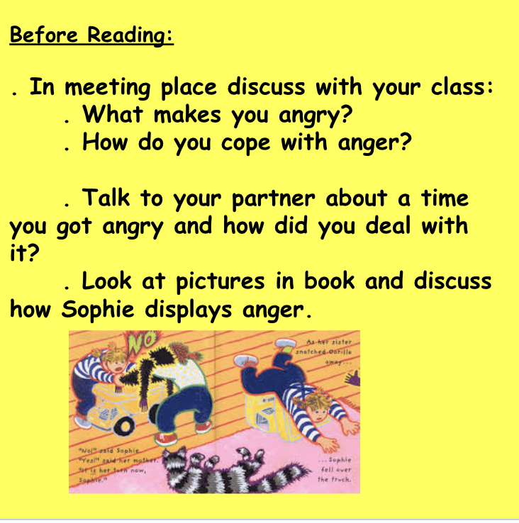 With this book, incorporate discussions on empathy and perspective-taking. Ask students to think about how the other characters in the book might have felt when Sophie was angry and how they might have responded. This can help children understand that everyone experiences different emotions and that empathy can help build stronger relationships.