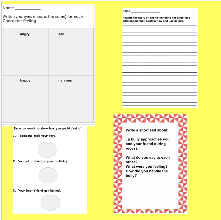 The lessons focus on helping children identify and manage their own anger. Teachers could also encourage children to express their emotions in healthy ways, such as through art or journaling.